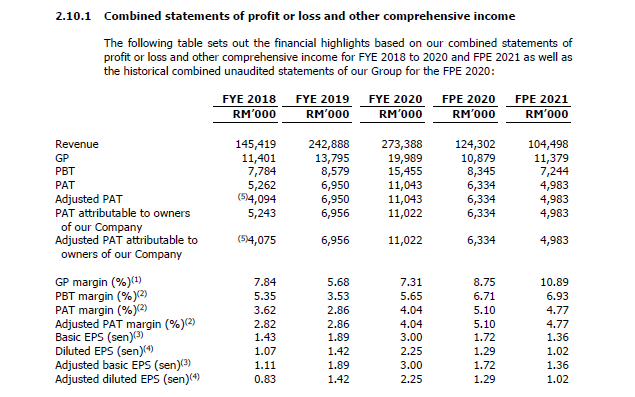 Dibawah ini adalah gambar rajah ringkasan financial information untuk IPO SIAB HOLDINGS Berhad dari 2018 sehingga 2020
