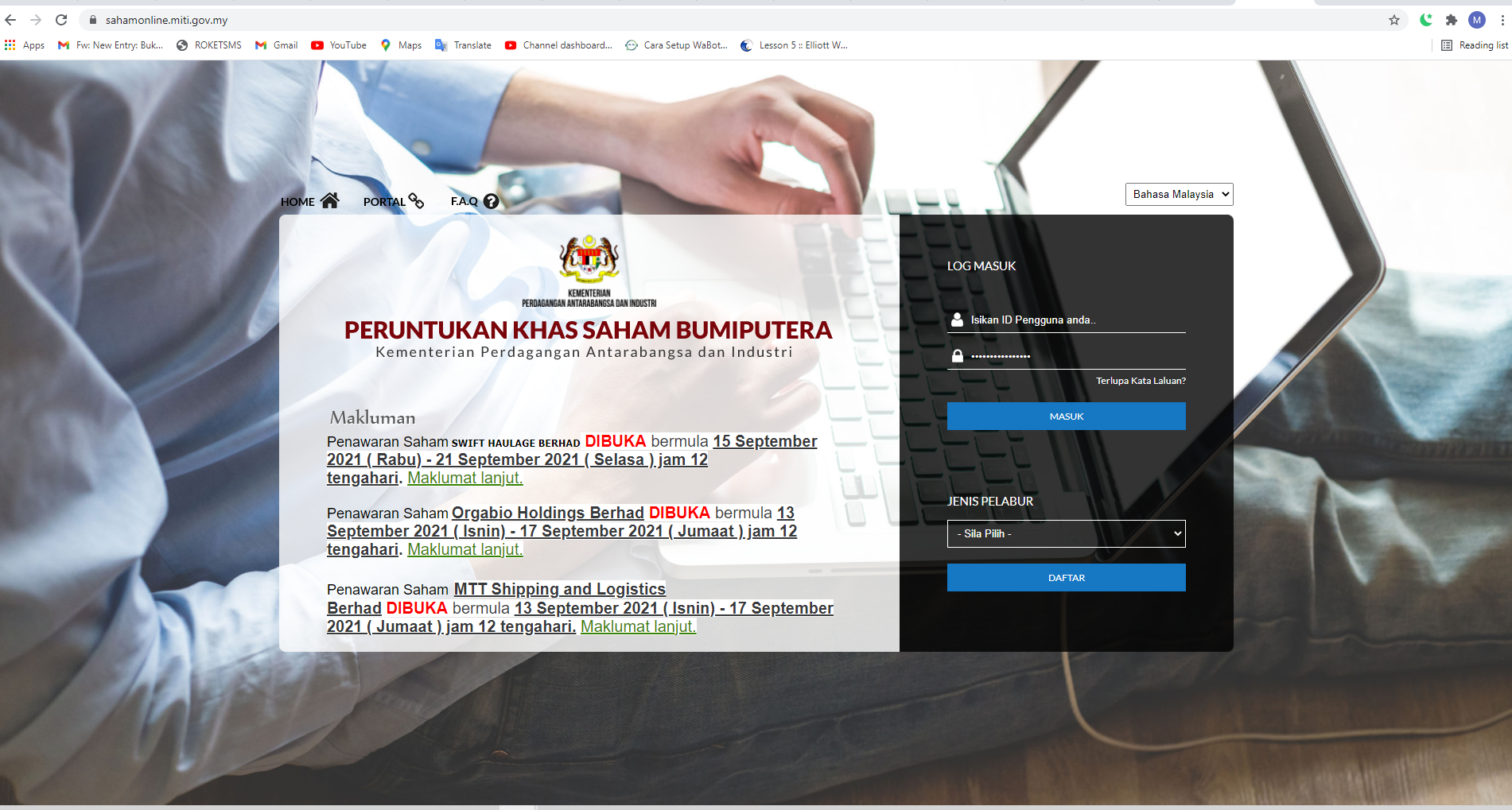 Jadi sekarang IPO Swift Haulage Berhad di Bursa Malaysia di buka tawaran untuk BUMIPUTRA melalui MITI