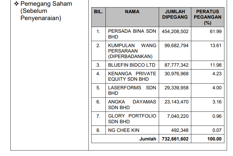 Pemegang saham sebelum listing