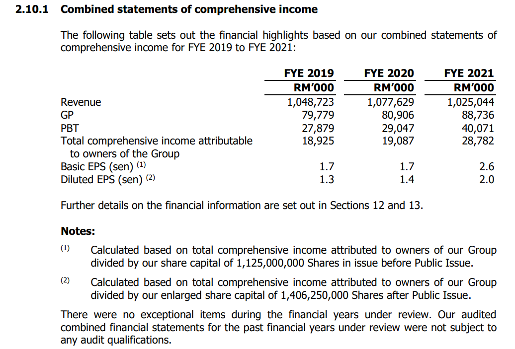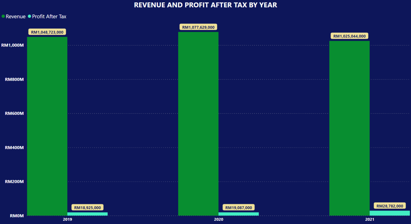 Dibawah ini adalah gambar rajah ringkasan financial information untuk Unitrade Industries Berhad dari 2019 sehingga 2021