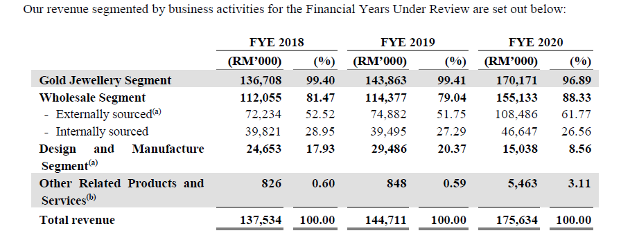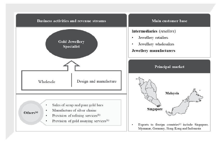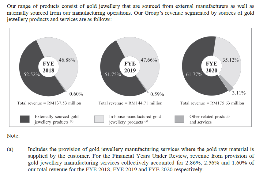 Mereka adalah pakar barang kemas emas yang terlibat dalam aktiviti pemborongan, reka bentuk dan pembuatan. Mereka fokus kepada barang kemas emas 916 yang mana mengandungi 91.67% kandungan emas tulen yang dialoi dengan logam lain. Pelbagai jenis barang kemas di tawarkan termasuk produk rantai emas seperti rantai, gelang kaki dan rantai asas serta gelang , cincin, loket, azimat dan anting-anting.