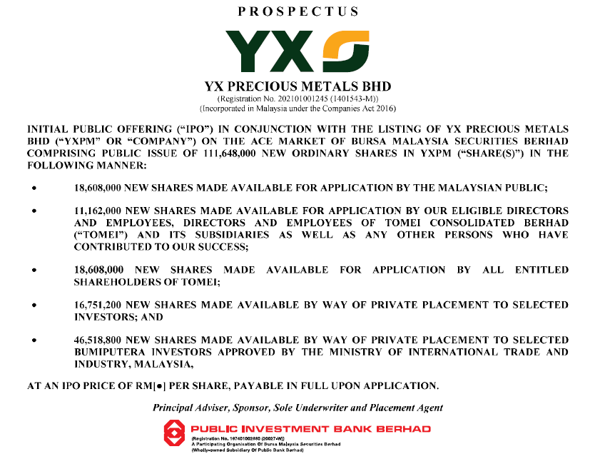 IPO YX PRECIOUS METALS BERHAD