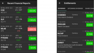 KLSE Screener also provides the convenience of checking the latest news on financial reports as well as entitlements such as dividend distributions or bonus issue announcements.
