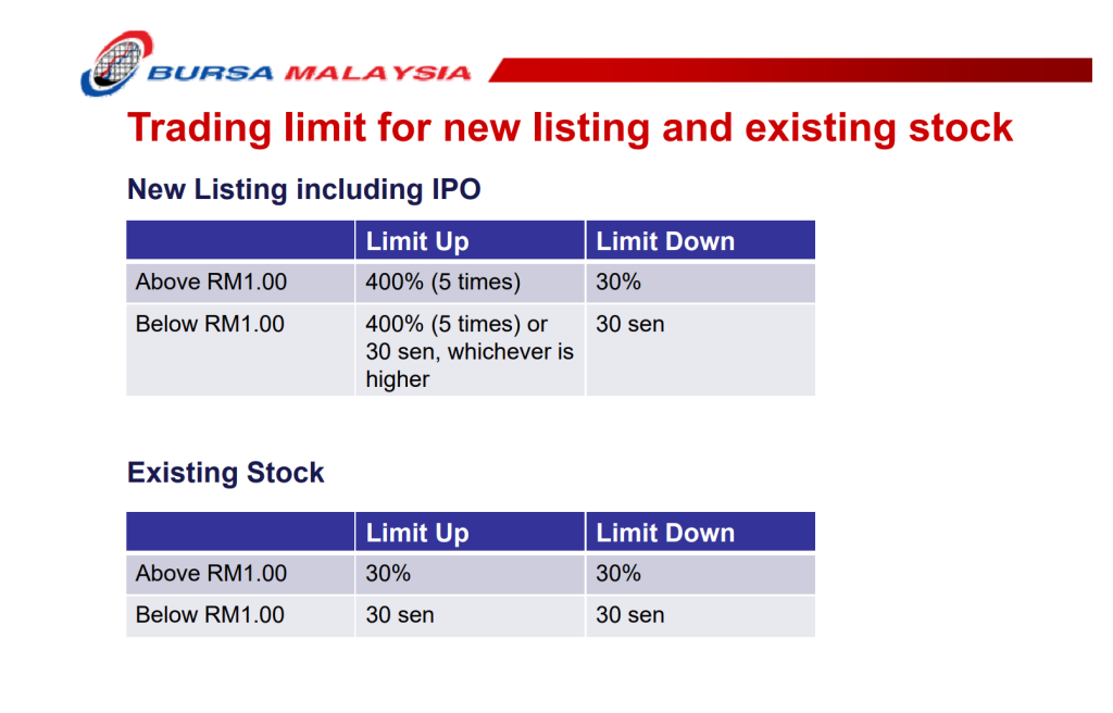 Limit Up and Limit Down for IPO and Stocks on Bursa Malaysia