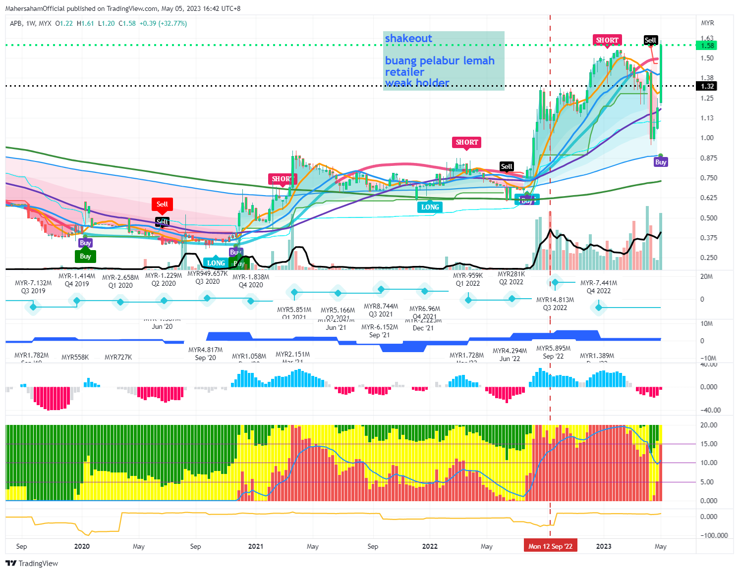 Anda boleh mendapatkan chart saham yang telah saya masukkan sekali indikator yang selalu saya gunakan dan saya ajarkan kepada student saya.