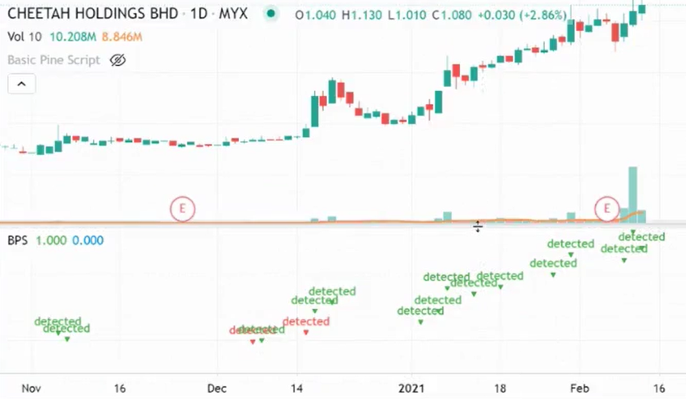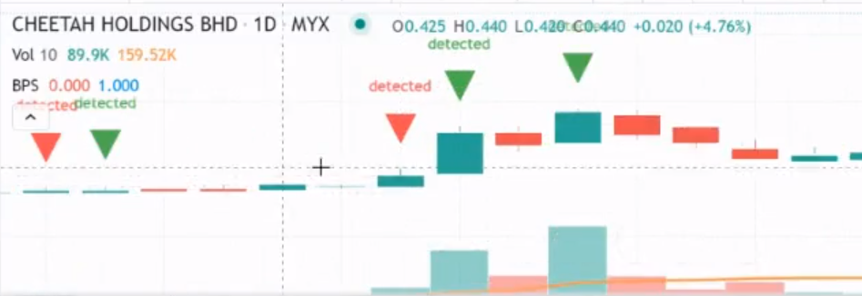 plotshape(nak_cari, title="3M + Vol", location=location.abovebar, style=shape.triangledown, textcolor=result ? color.green : color.red, text="detected", size=size.auto, color=result ? color.green : color.red)