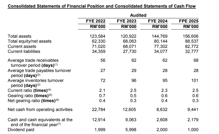 Total aset meningkat berturut-turut, mencecah RM156.6 juta (FPE 2025).
