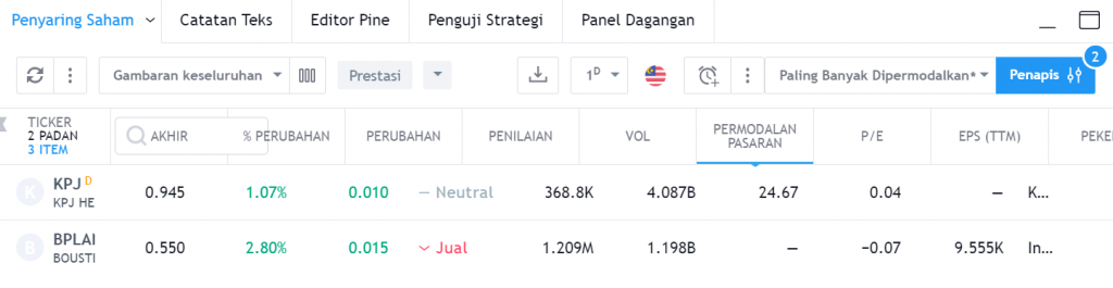 As you can see, companies KPJ and BPLAI for today have the bullish engulfing candlestick pattern.