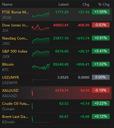 Di luar pasaran saham, Emas terus menunjukkan taringnya dengan mencecah harga rekod baru. Orang ramai mula cari emas sebab risau dengan ketegangan geopolitik (isu AS-Iran) dan kemungkinan kerajaan AS mengalami shutdown. Bila dunia rasa tak selamat, emaslah tempat pelabur "berlabuh."