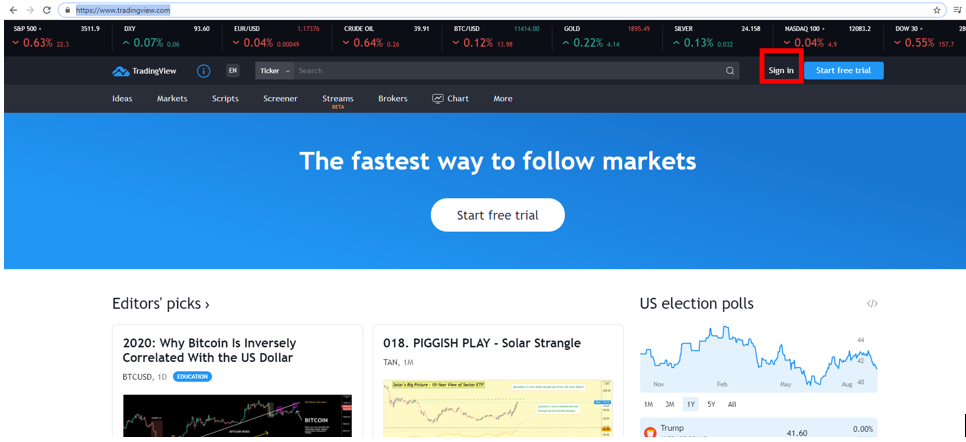 Open a new tab and visit https://www.tradingview.com/.
