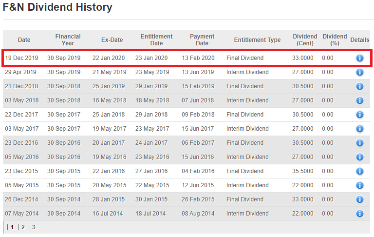 Bagi yang berminat untuk mendapatkan dividen syarikat F&N perlu memiliki saham ini dengan membelinya selewat-lewatnya sehari sebelum Ex-Date iaitu sebelum 22 Jan 2020.