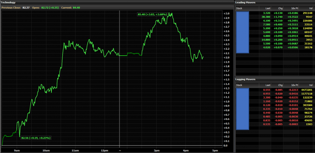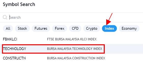 Then search for the index and select the sector you wish to analyse. In this example, we will select the technology sector.