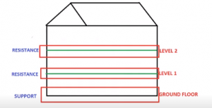 To understand support and resistance more easily, let us use the concept of a house. This house has 3 levels (Ground Floor, Level 1, and Level 2).