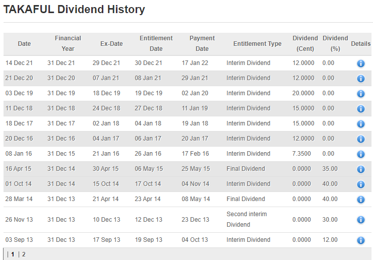 Berdasarkan rekod, Takaful Malaysia telah membayar dividen secara konsisten sejak 2012 hingga 2021 tanpa pernah terlepas, menjadikannya pilihan menarik bagi pelabur yang mencari pendapatan pasif.
