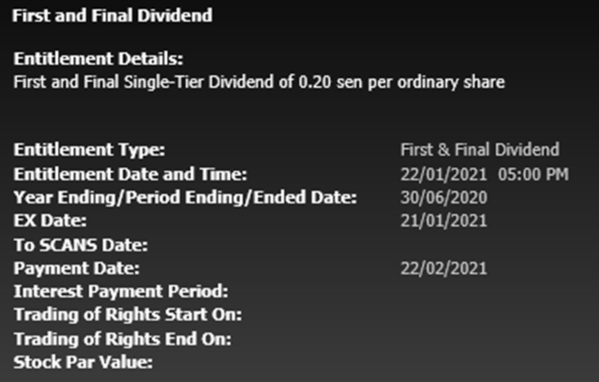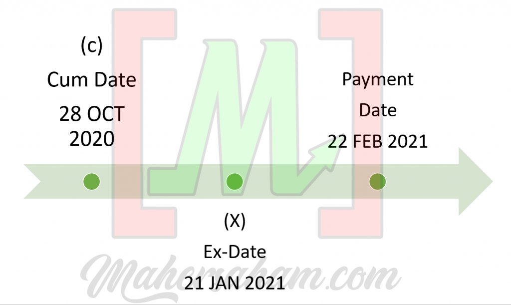 Based on the counter''s announcement, there are 3 key things you need to know, as explained above: the cum date, ex-date, and payment date.