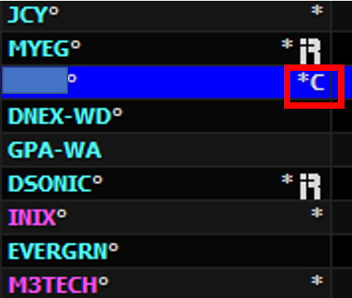 Based on the example above, if there is a "C" symbol next to the counter name on the right side, it indicates there is a cum date for a corporate exercise.
