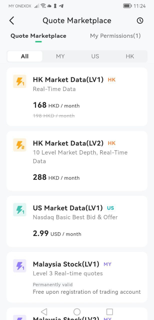 Quote Marketplace adalah adalah tempat membeli akses seperti 5level Market Depth sekiranya perlu.