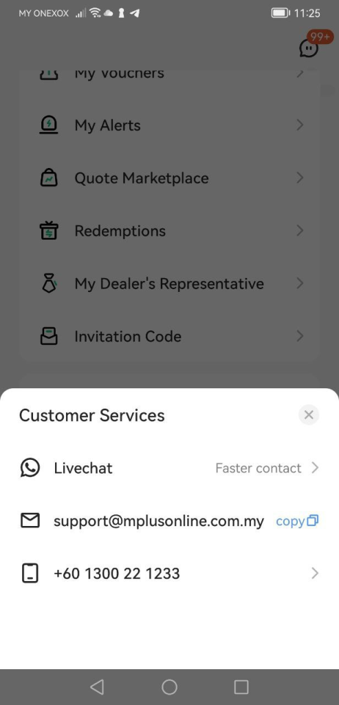Ruangan Customer Service membolehkan anda menghubungi Mplus untuk isu-isu berkaitan saham atau app. Sekiranya masalah tersebut perlu diajukan kepada Dealer/Remisier, maka pihak Mplus akan memberitahu tuan/puan.