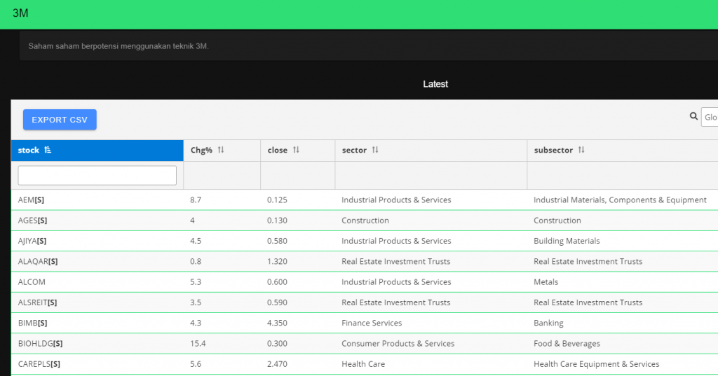 Dekat sini kita juga dapat lihat kaunter, last harga close, sector dan juga subsector.