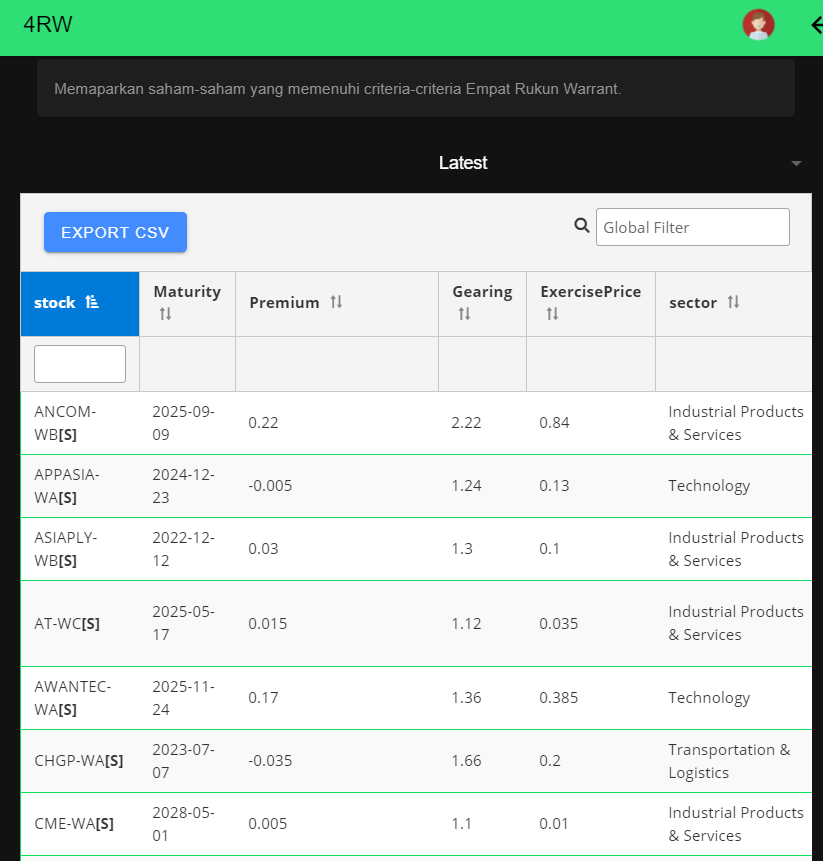 Ia sangat sesuai untuk anda yang meminati kaunter-kaunter warrant dan memudahkan anda untuk membuat kajian dan pilihan kaunter warrant yang selamat.