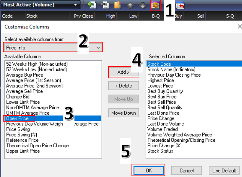 Disebabkan kita nak tahu performance screener ini maka kena tambah beberapa column.
