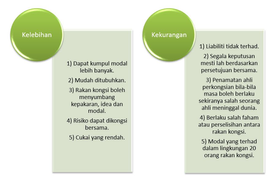 A partnership business is similar to a sole proprietorship, except it has more than 1 owner and not more than 20 owners. This business falls under the Partnership Act 1961. The capital obtained is not large as it comes from the partnership members or bank loans. The registration period for a partnership company is 1 hour at the SSM counter. Company profits are divided according to capital contribution, work done, and mutual agreement among company members. Likewise, company losses must be shared together. Examples of partnership businesses include accounting firms, law firms, and so on. The ruling on partnership business is derived from the saying of the Prophet Muhammad (peace be upon him) which means: