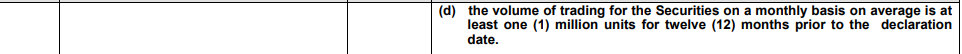 - The average daily trading volume must exceed one million units over the most recent 12 months