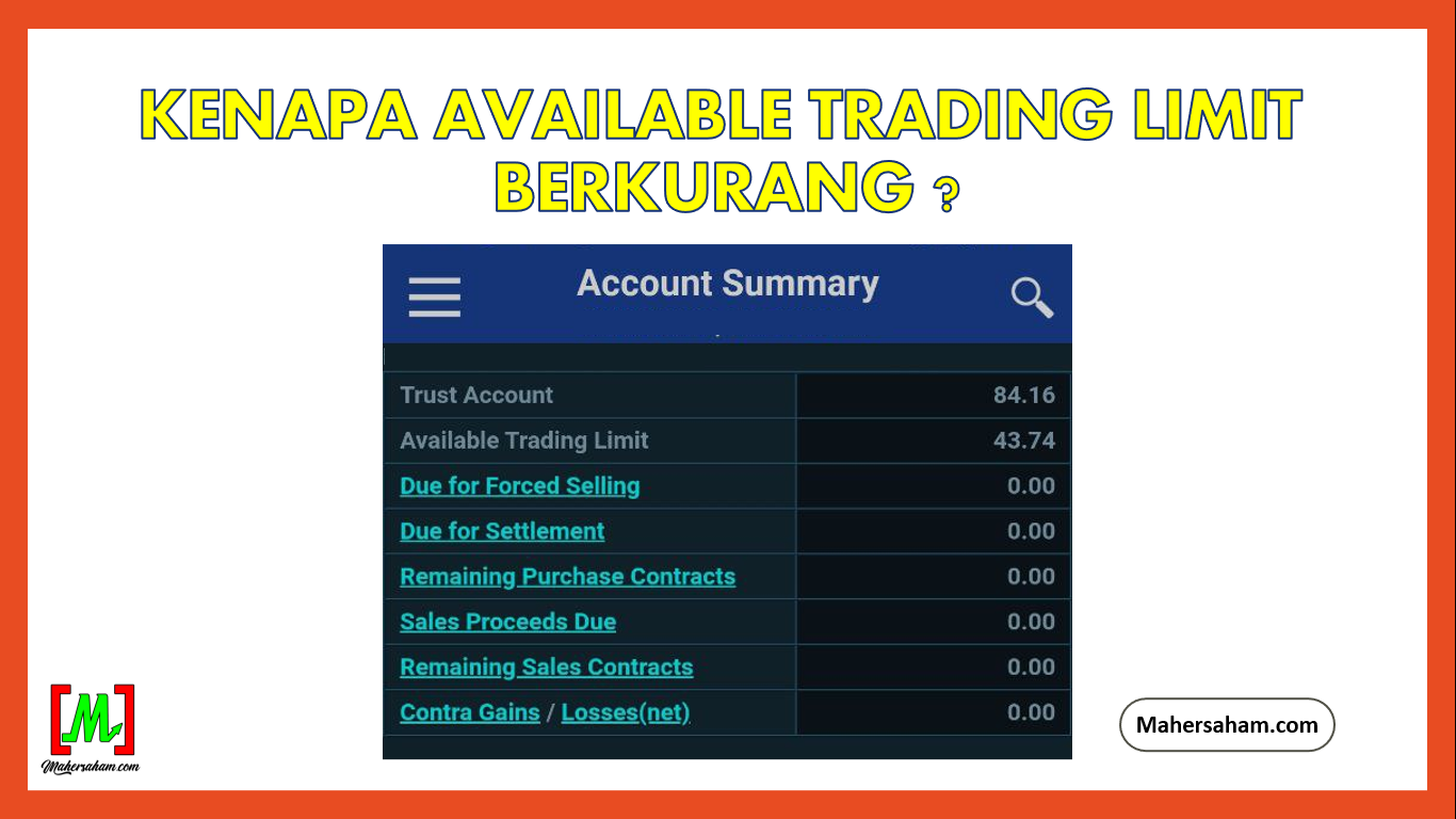 For example, if your Available Trading Limit shows RM5,000, then your Trust Account should show a higher amount due to the T+1 and T+2 settlement mentioned earlier, as well as the brokerage system updates for previous transactions.