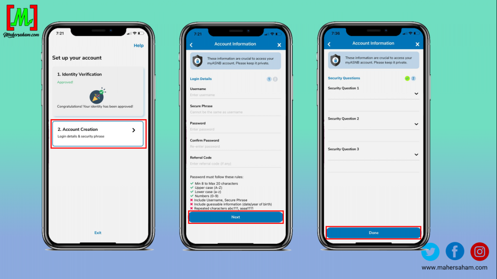 Kesebelas: Klik pada ‘Account Creation’. Kemudian isikan maklumat akaun asb anda. Lengkapkan juga 3 soalan keselamatan yang tertera.