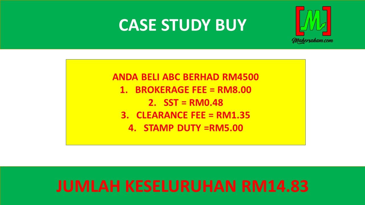 Contoh anda beli saham ABC BERHAD RM4,500. Jadi caj dikenakan adalah sebanyak RM8