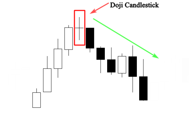 Pembentukan doji juga menujukkan bahawa buyer tidak dapat mengekalkan harga lebih tinggi dan seller push harga untuk kembali kepada harga opening.