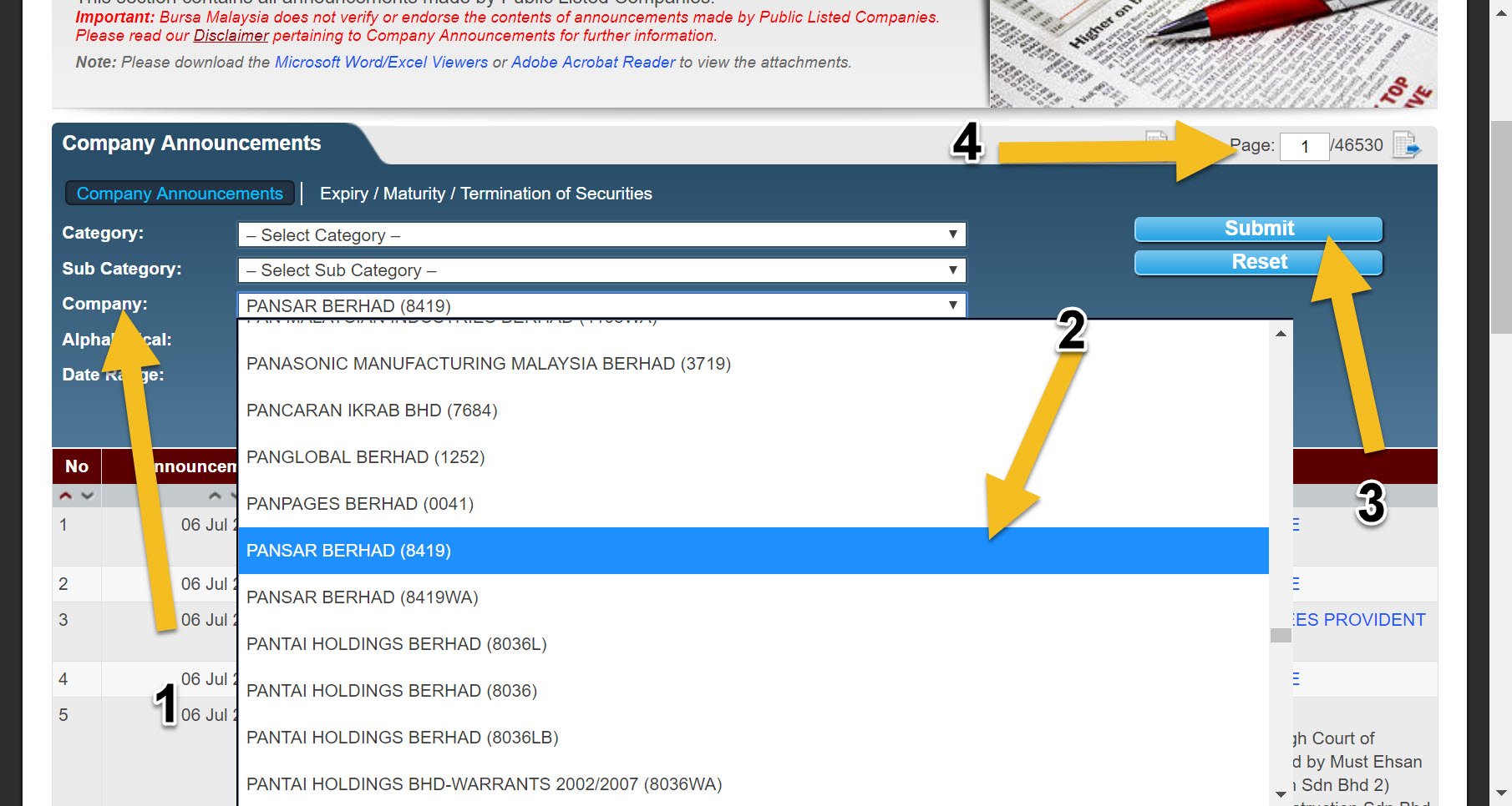 Pengumuman tersebut boleh diakses dengan mudah pada website bursamalaysia.com pada bahagian company announcements.