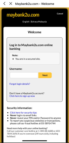 8. Sebagai contoh, anda pilih ‘Maybank’, isi seperti anda membuat transaksi FPX yang biasa.