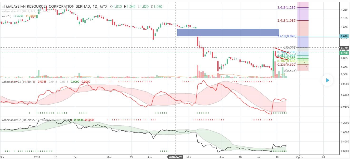 MRCB bakal membentuk 123 pattern dan esok adalah T+8. Kebarangkalian adalah untuk meneruskan kenaikan selepas membentuk flag dan TP adalah 0.89 iatu di paras fibonacci 1.618