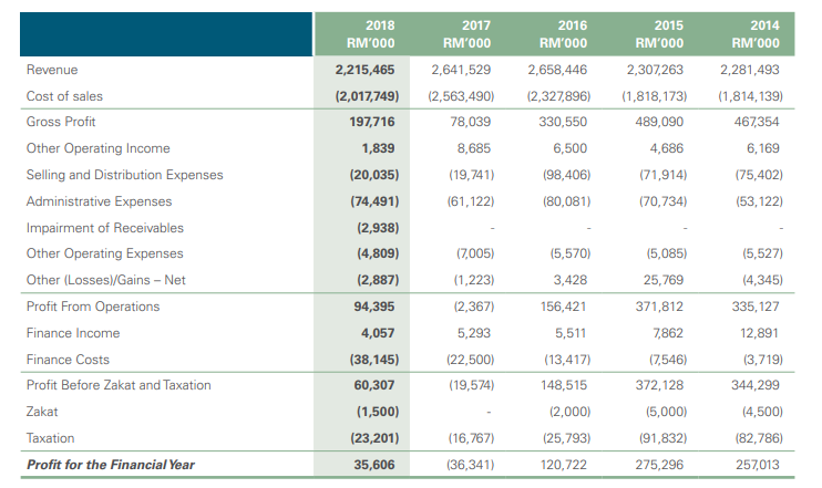 Akibatnya, pendapatan turun 16% daripada RM2.6 bilion kepada RM2.2 bilion pada tahun 2018.