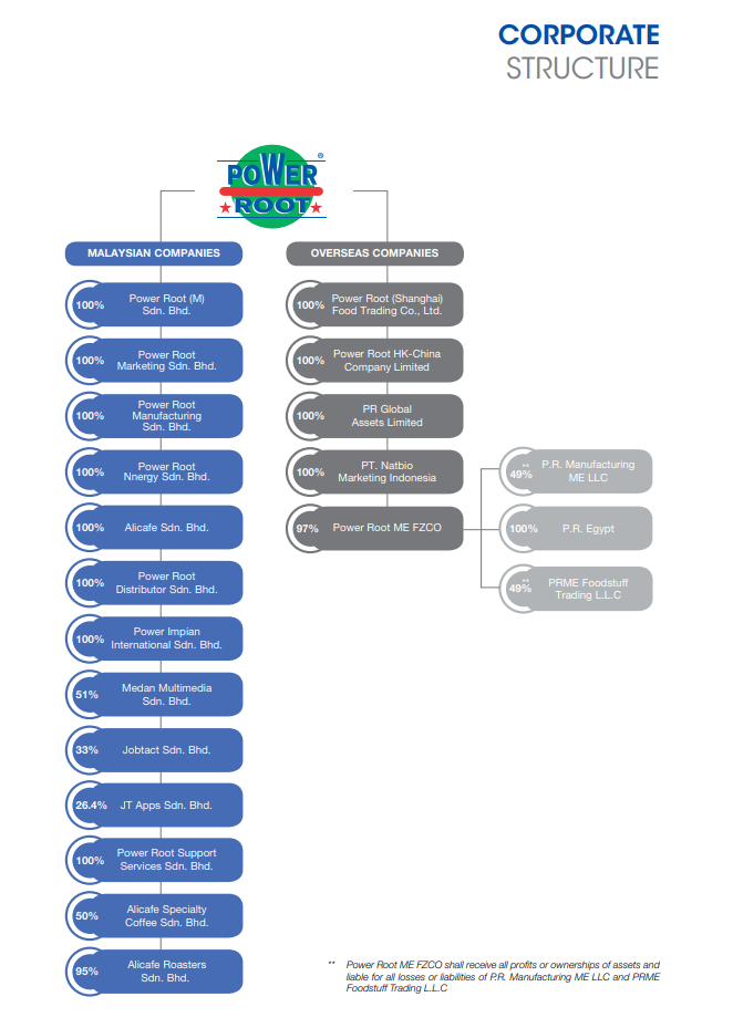 POWER ROOT (M) SDN. BHD kini merupakan anak syarikat dimana syarikat tersebut telah tersenarai di Bursa Malaysia iaitu POWER ROOT BERHAD (dahulunya dikenali sebagai Natural Bio Resources Berhad).