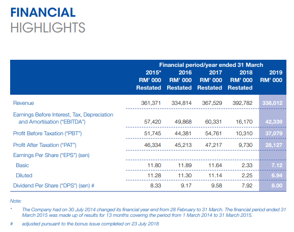 Walaubagaimanapun, keuntungan selepas ditolak cukai (Profit After Tax; PAT) bagi 2019 meningkat 189.7% iaitu sebanyak RM28.1 juta jika dibandingkan pada 2018 iaitu RM9.7 juta.