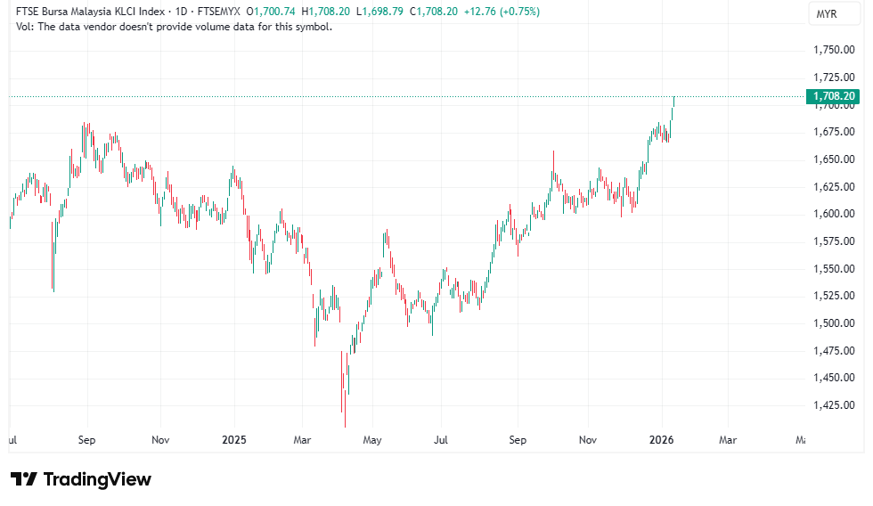 FBM KLCI baru-baru ini menutup dagangan pada paras tertinggi dalam tempoh tujuh tahun, iaitu di paras 1,708 mata.
