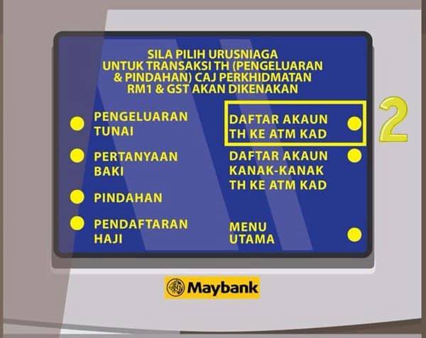 3. Pilih Daftar Akaun TH ke ATM Kad