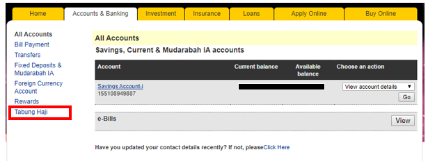 Transfer Tabung Haji Online guna BIMB Online Banking